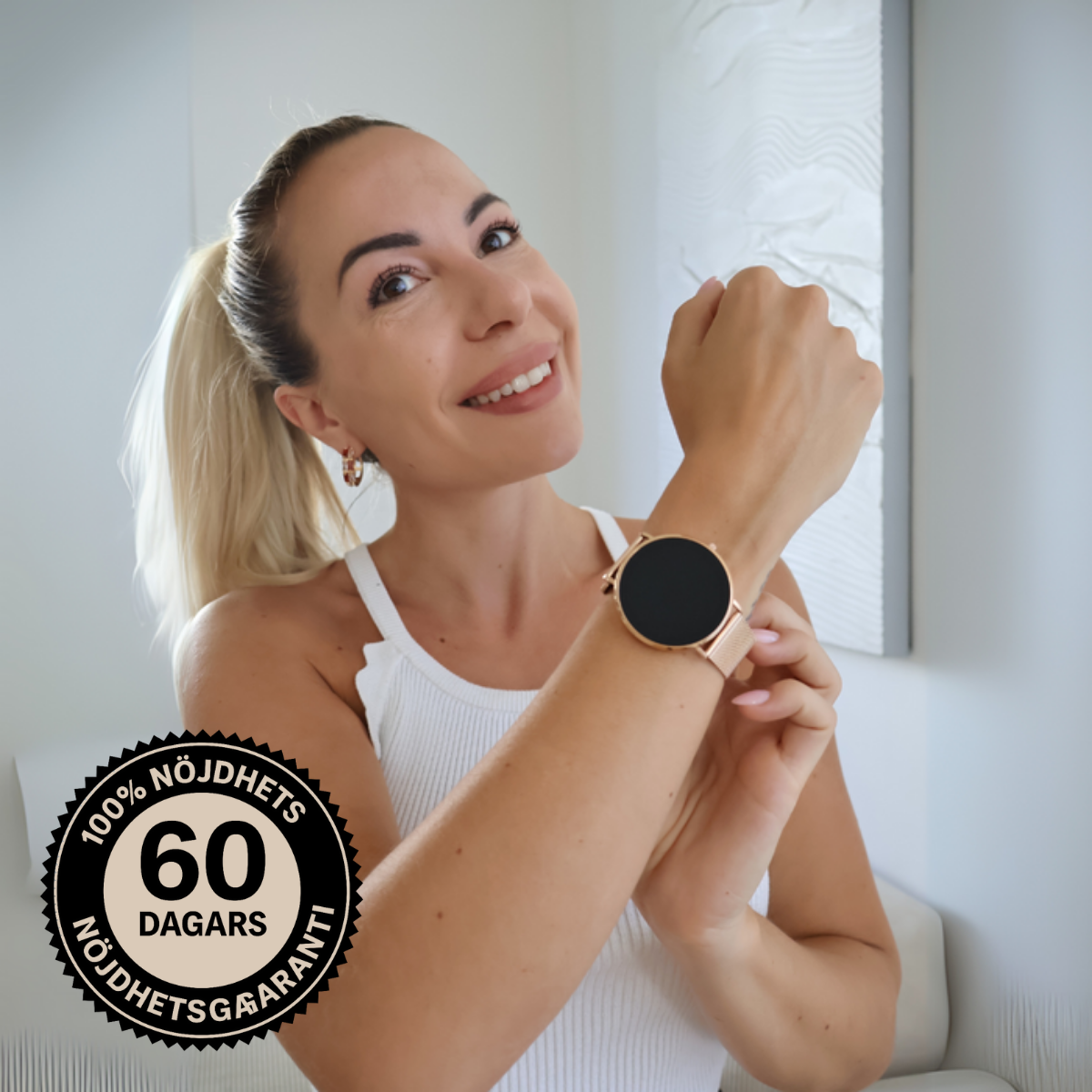 Ingen fara. Du har 60 dagar på dig att använda, testa och prova klockan i din vardag.