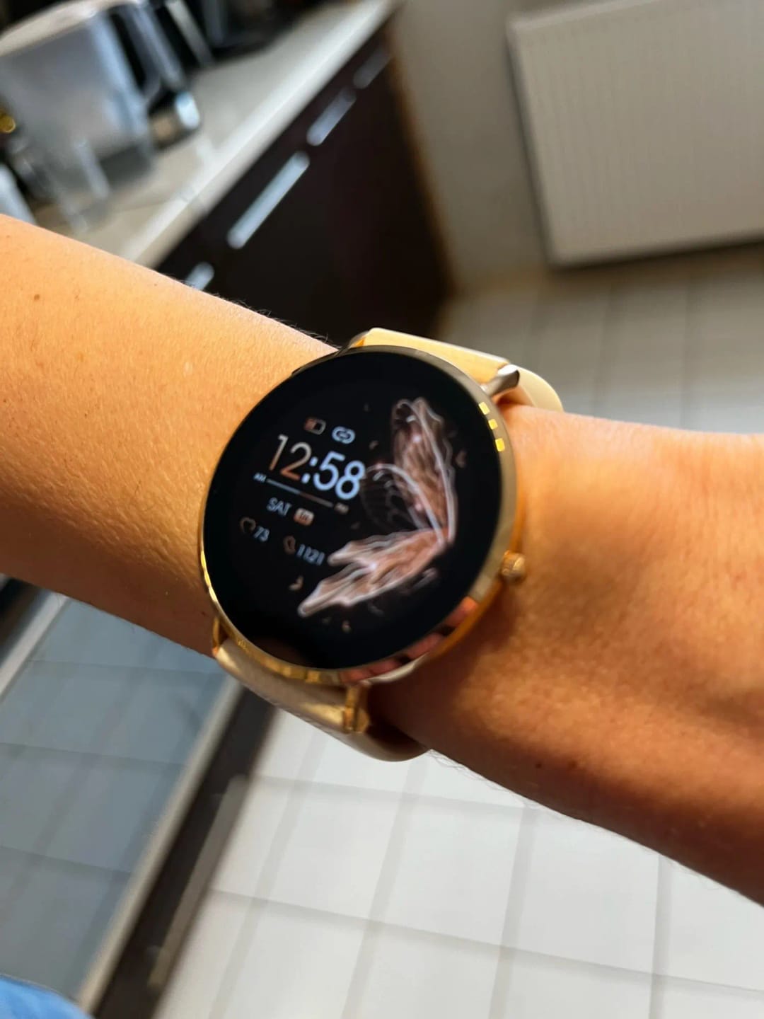 Jag har haft smartklockor tidigare men de har alltid varit tjocka eller obekväma. Den här är superslimmad och känns verkligen som ett smycke. Jag byter nästan urtavla varje dag, som att ha en ny klocka varje gång. Älskar dessutom att den fungerar perfekt med min iPhone.