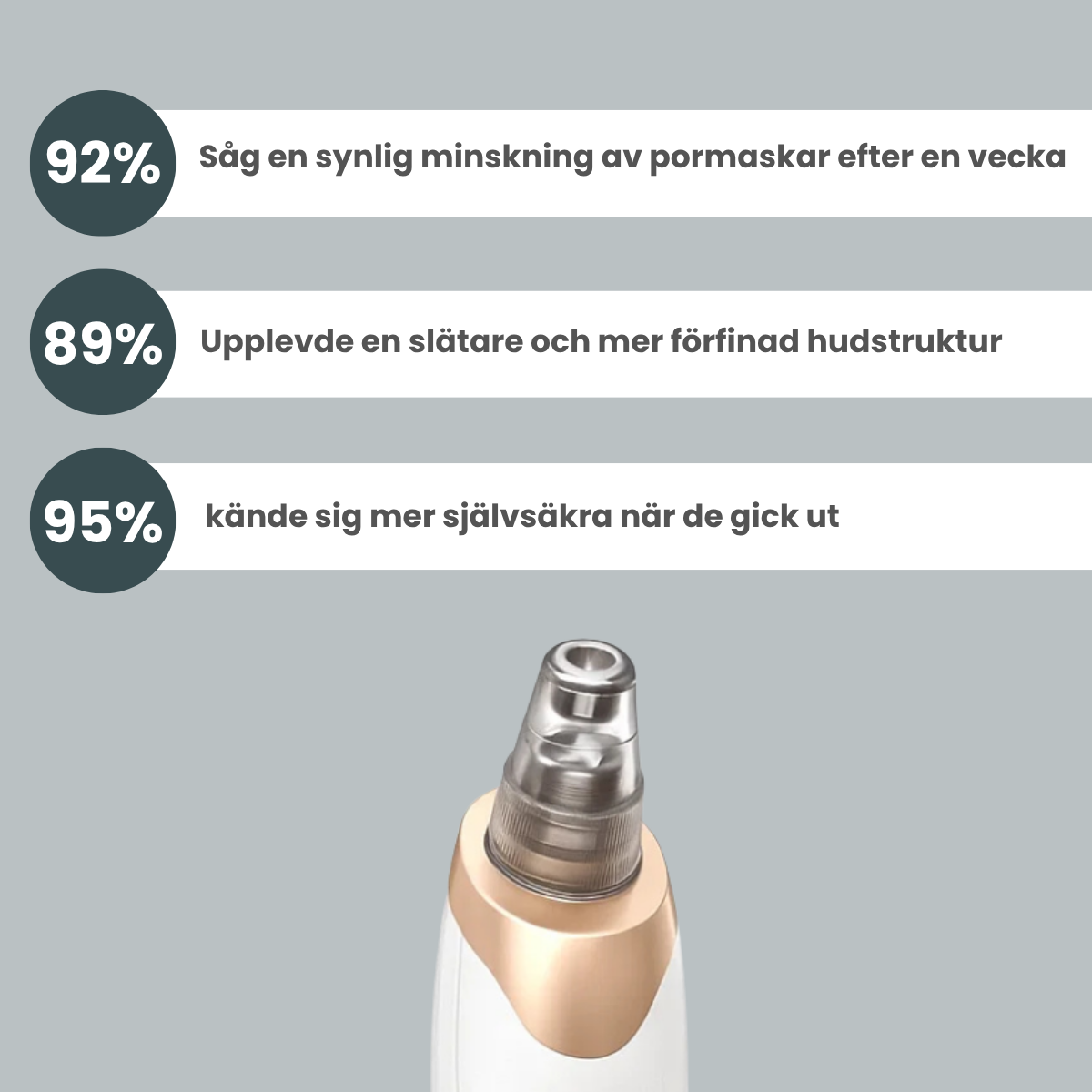 Nej. Sugkraften är utformad för att vara effektiv men samtidigt mild. Du känner att den jobbar, men det gör aldrig ont eller känns skarpt. Det känns snarare som att porerna äntligen rensas på riktigt.
